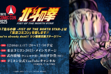 アニメ『北斗の拳 -FIST OF THE NORTH STAR-』12月6日(土)「東京コミコン2025」で武内駿輔が登壇するスペシャルステージ開催! 2025年11月20日 原作・武論尊、漫画・原哲夫によって生み出された伝説のアクション漫画『北斗の拳』。 1983年、『週刊少年ジャンプ』で連載を開始した本作は、圧倒的な画力で描かれる世界観とキャラクタービジュアル、そして究極の暗殺拳“北斗神拳”で悪を倒す主人公・ケンシロウの生き様が読者の心を... 続きはコチラ2026年放送予定アニバースイベント情報ニュース北斗の拳 -FIST OF THE NORTH STAR-