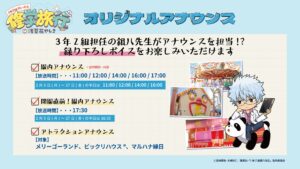 本イベントは、TVアニメ「3年Z組銀八先生」の主人公である坂田銀八先生と生徒たち8名が花やしきへ修学旅行で訪れたイメージで描き下ろされたコラボイラストが登場する。会場では、描き下ろしイラストを使用したオリジナルグッズの販売やコラボフード、ラリーなどさまざまなコンテンツが楽しめる。さらに、新規収録された坂田銀八(CV:杉田智和)によるオリジナルアナウンスは必聴です。