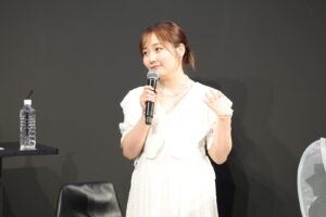 登壇後の挨拶では、天﨑さんがいきなり「今日は僕のことを殿下と呼んでください!」とリクエスト。会場から「殿下ー!」と声が飛ぶ一幕があり、開始早々和やかなムードに包まれます。