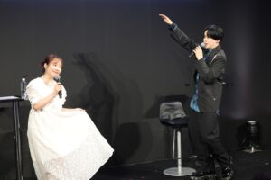 最終的に勝利を収めたのは宮本さん。しかし、ここで天﨑さんから「オリジナルのV振りで!」という無茶振りが飛び出します。台本通りではなく自分だけのV振りを求められた宮本さん、しばし考えた末に繰り出したのは――まさかの「ごわす」語尾。独自のアレンジを加えたV振りで最新PVへとつなげると、会場からは笑いとともに大きな拍手が送られました。