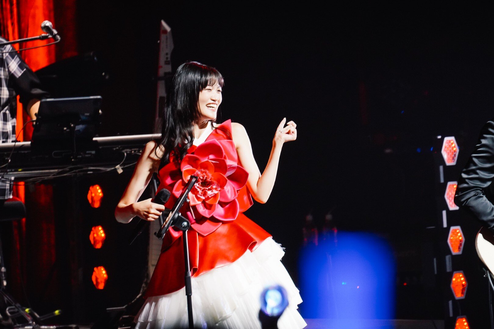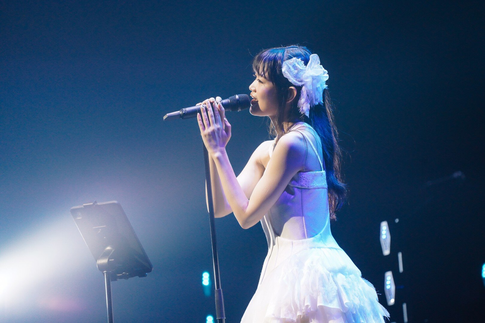 「未来に読むときに、昔の自分を思い出しながら背中を押して欲しいなっていう気持ちで作りました」という言葉の後、ライブ用曲「Memory」で不安や傷や葛藤を抱えて“ここで生きていく”という未来への決意を吐露。「琥珀糖」はピアノ伴奏のみで情感を込めて届けると、三日月と星空をバックに歌った「glimmer」でスクリーンに流れ星が流れ、「Tear of Will」では一転して壮大なスケール感を表現。またもや一気に雰囲気を変えたジャズナンバー「ESCORT」では心地の良いグルーヴで観客の体を揺らした。