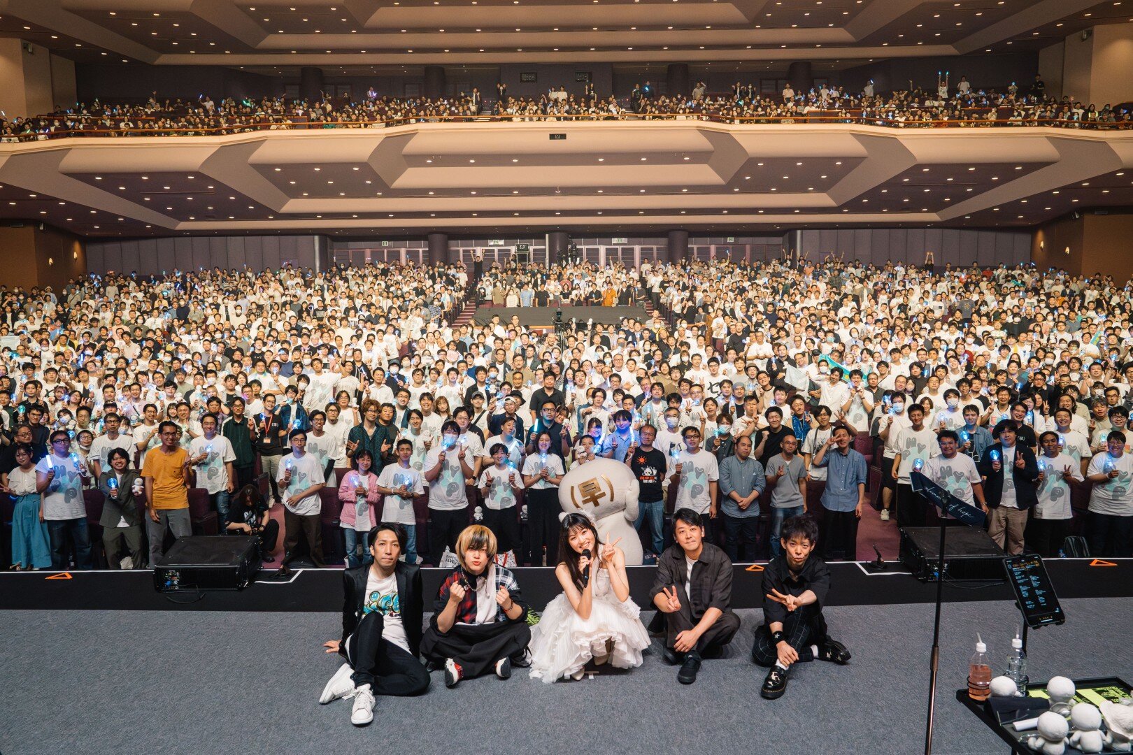 これまでのジャケットやアーティスト写真、ライブ映像などをまとめたメモリアルビデオに続いて、画面に映っていたグッズの1つである“10thゴールド(早)ぬい”がスクリーンを飛び出し、等身大の着ぐるみとなって会場に現れた。観客とコール&レスポンスを繰り広げたあと、「僕らのアンサー」から「透明シンガー」「 残滓」と激しく攻撃的なバンドサウンドによって観客の高揚感は一気に上昇。エレキギターの効いたロックバラード「レイン」では止まない雨を体現し、ここからバラードコーナーへと突入。