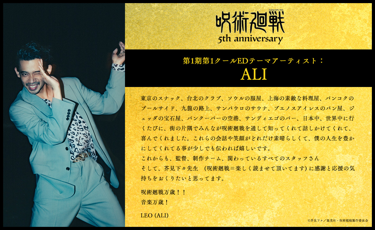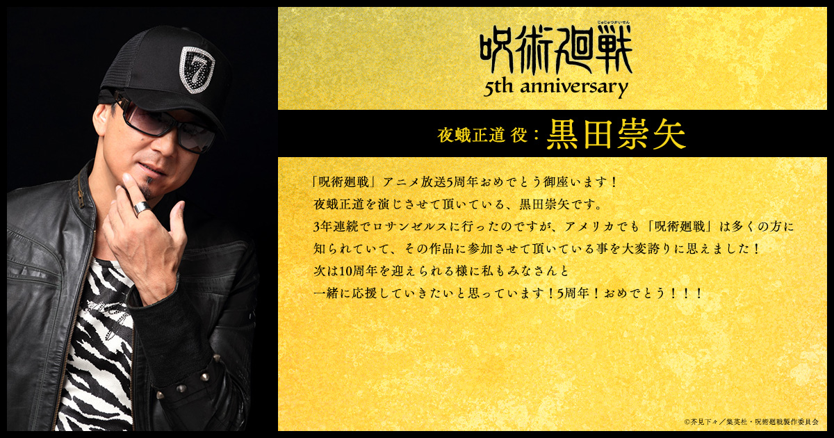 『呪術廻戦』アニメ放送5周年おめでとうございます。世界中で愛されている、大好きなこの作品に携わらせていただいたことをとても光栄に感じております。