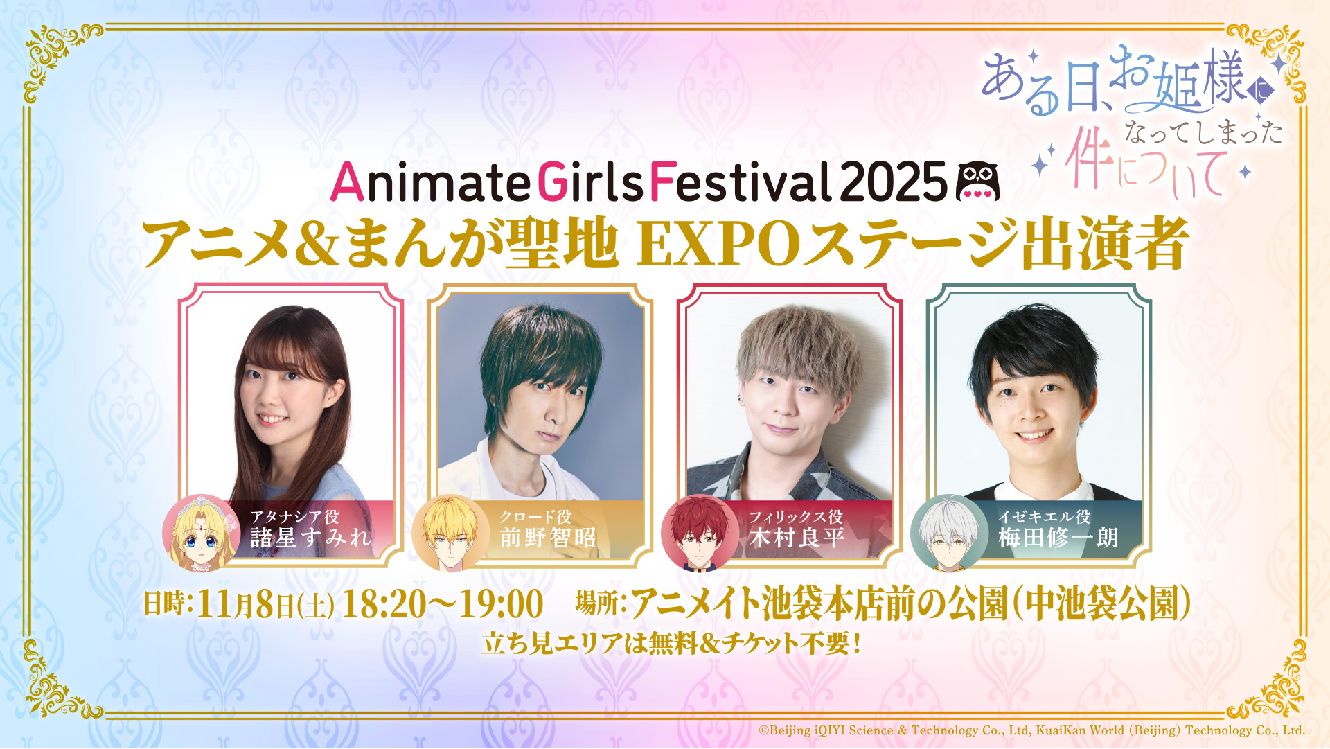さらに、2025年11月8日(土) ~9日(日)開催「アニメイトガールズフェスティバル2025」で、アニメイト池袋本店前の公園で同時開催される「アニメ&まんが聖地EXPOスペシャルステージin AGF2025」にステージ出展決定。諸星すみれ、前野智昭、木村良平、梅田修一朗ら豪華メインキャスト陣が出演する。