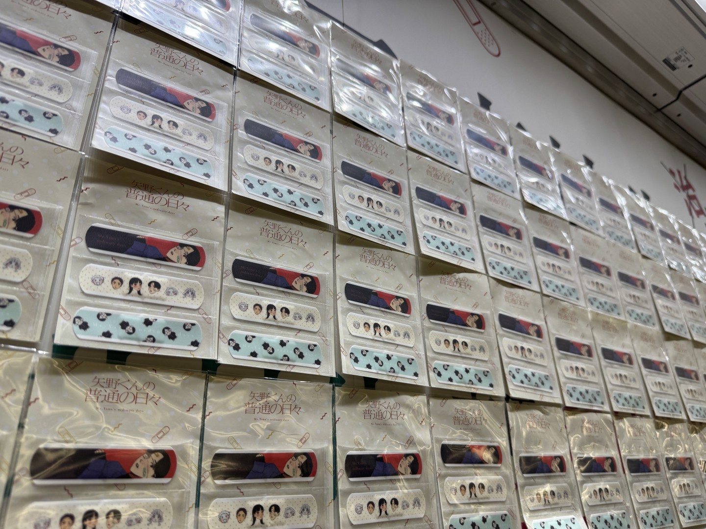 表面のPP袋を剥がすと、中には『矢野くんの普通の日々』のキャラクターたちがデザインされたオリジナル絆創膏が封入されている。原作マンガからアニメへと拡がった本作の魅力を、視覚だけでなく手にとる体験を通じて訴求する仕掛け広告となる。