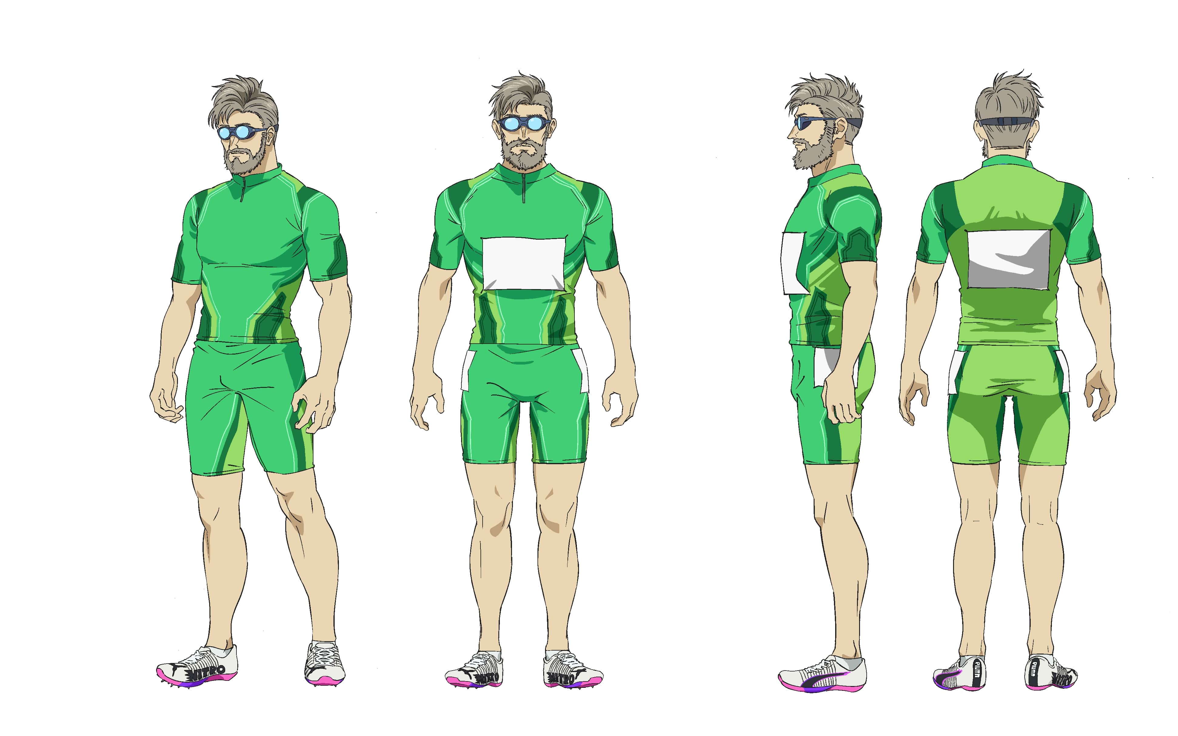 そして、原作・アニメファンの間でも絶大な人気を誇る、陸上界を牽引する財津と海棠について、「まるで世界全体を広く見渡している“神様”のような眼をしているキャラクターだな、というのが第一印象でした。一歩間違えると、死んだような眼になってしまうので、そうならないように気を付けました。」と財津というキャラクターの印象を話し、海棠に関して「サングラスや髭などとにかくディテールが多いので描くのは大変でした。また、髭がありつつも年齢的にはまだ若いので、年を取りすぎていない印象を残すよう心がけました。」と、制作上での苦労を明かしている。