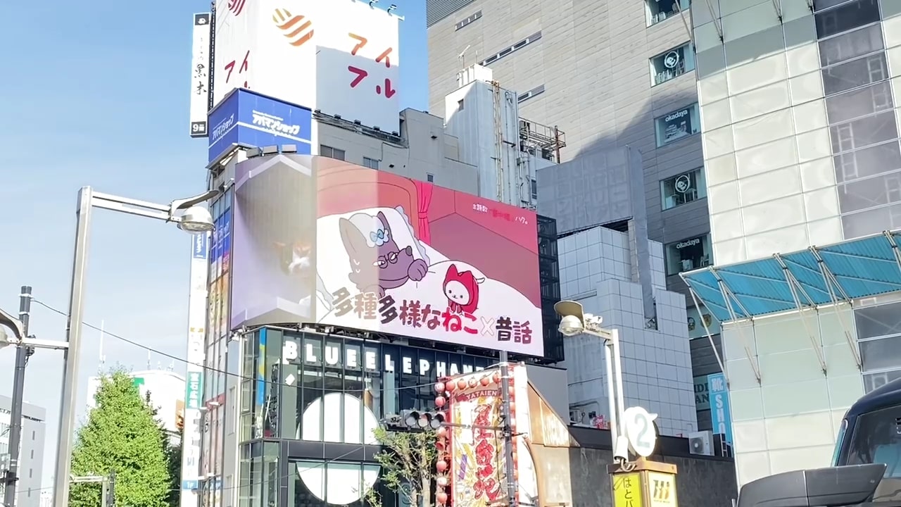 「新宿東口の猫」と共にアニメの広告映像が流れるので、ぜひ注目してください。