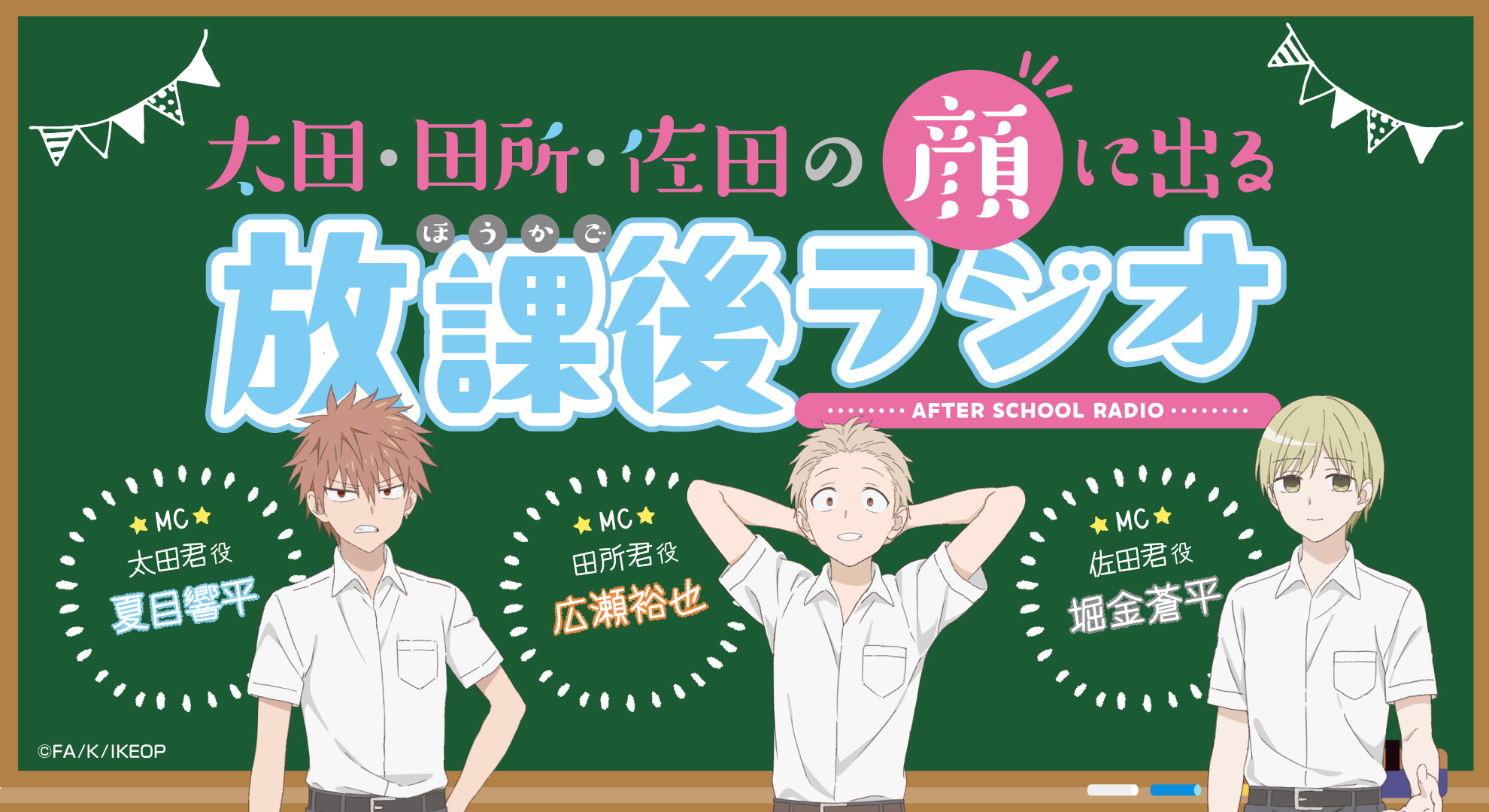 メインパーソナリティーは、太田君役の夏目響平さん、田所君役の広瀬裕也さん、佐田君役の堀金蒼平さんの3人が担当し、放課後に友だちが集まって話しているような和気藹々としたトークを繰り広げるラジオとなっています。