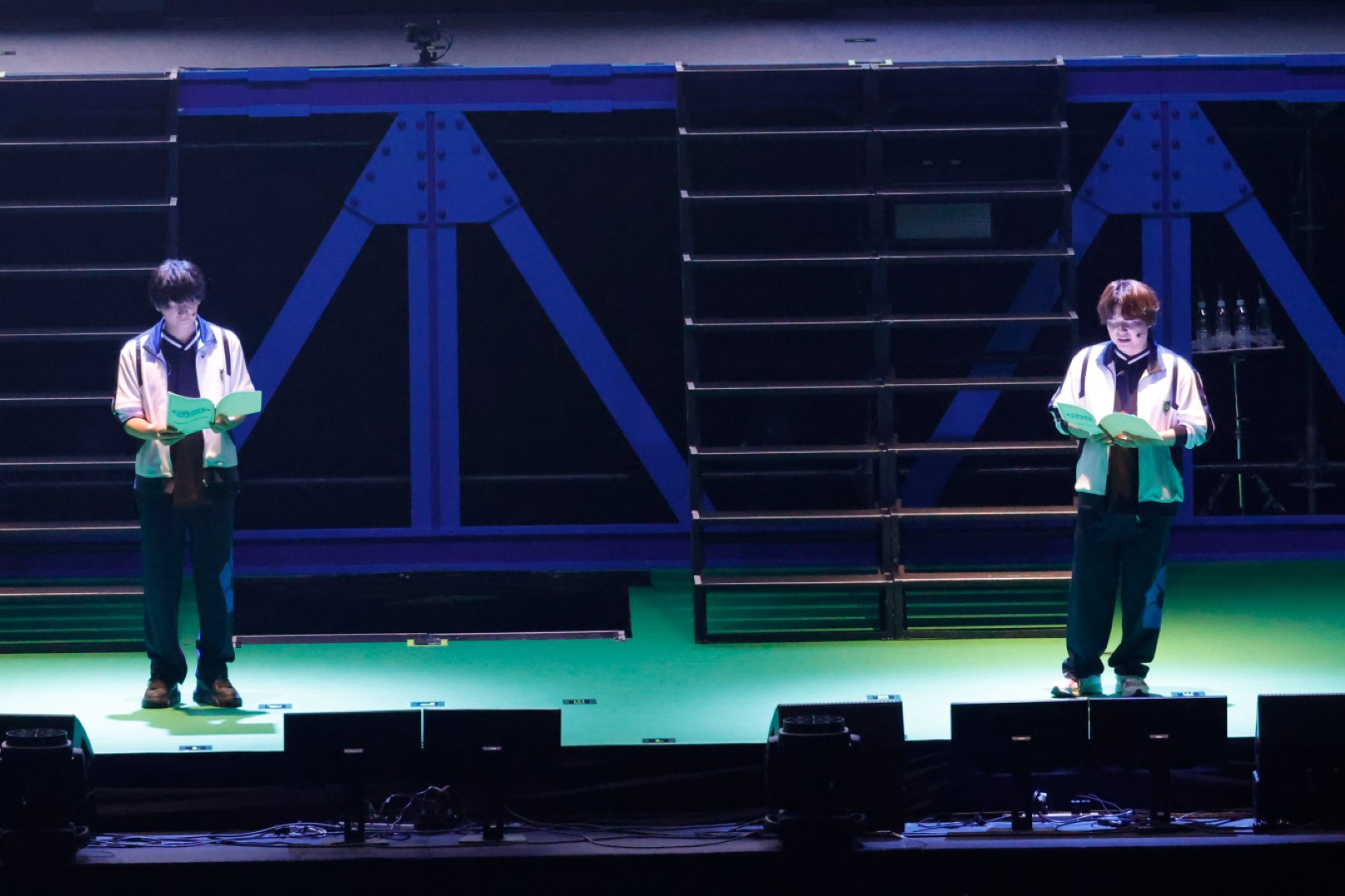デイゲームも後半戦に突入し、『ブルーロック』にまつわるお宝を見せて、凡か非凡かを判定する「凡でも鑑定団!」のコーナーへ。凡か非凡かは、観客が振るペンライトの多さによって最終的に判定されるとのこと。最初に登場したのは、三上さんが持ってきたTVアニメ第2期の台本。『ブルーロック VS. U-20 JAPAN』が初のアニメレギュラー作品である三上さんは台本すべてがお宝だといい、とくに持参した話数の台本は「剥き出しにするだけがエゴじゃないで」という氷織のセリフについて悩みに悩んだこともあって、とくに思い入れが強いと語った。該当ページにはびっしりと細かく書き込みがされており、客席だけでなくキャスト陣からもすごいと感心する声があがった。「“エゴじゃないで”のセリフを、氷織くんのキャラから外れるくらい低くしてくださいとディレクションをいただいて、そこに苦戦しましたね」と収録を振り返った後、先輩たちからの無茶ぶりに応えてそのセリフを再現。大きな拍手が起こり、客席による判定はもちろん非凡となった。