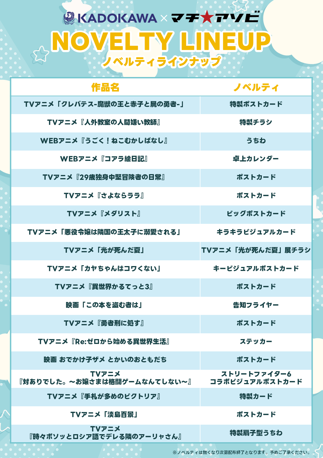 “マチ★アソビvol.29”KADOKAWAブースで配布されるノベルティ情報が公開された。