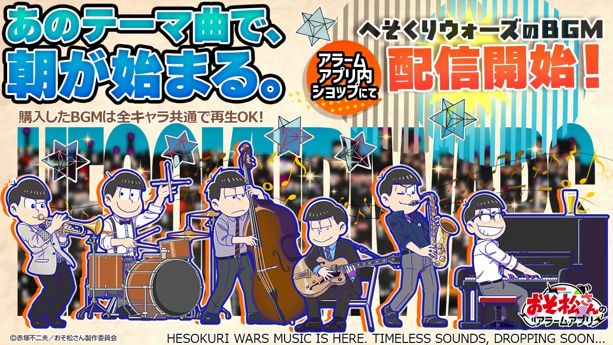 この機能の解放に合わせて、2016年から2022年までサービスを提供していたスマートフォン向けアプリゲーム「おそ松さんのへそくりウォーズ」で使用されていたテーマ曲の販売を開始する。