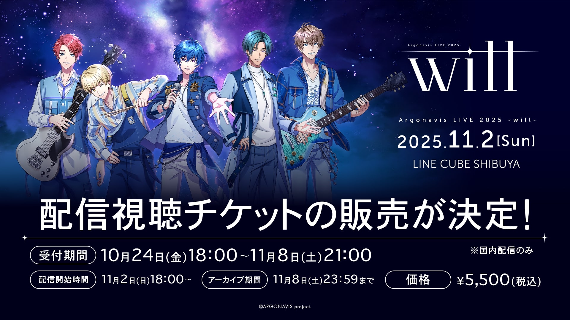 2025年11月2日(日)、LINE CUBE SHIBUYAで【Argonavis LIVE 2025 – will -】(主催:株式会社ブシロードミュージック)が開催された。