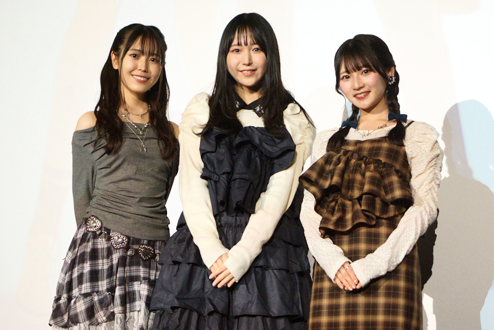 11月3日(月・祝)、、映画『MyGO!!!!!×Ave Mujica 合同ライブ「わかれ道の、その先へ」 LIVE FILM』の舞台挨拶付き上映会が行われ、高松燈役の羊宮妃那さん、千早愛音役の立石凛さん、要楽奈役の青木陽菜さんが登壇した。