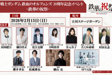 イベントは終盤、インフォメーションコーナーへ。入場特典や主題歌情報などに続き、トーク付き上映会の第2弾、第3弾の開催も告知された。第2弾では『鉄血のオルフェンズ』シリーズのスタッフ陣が、第3弾では長井龍雪監督、河西さん、細谷さんの参加が決定。第3弾への期待を問われた河西さんは、「語り尽くせないものがあると思いますが、いろいろと長井監督に深堀りしていけたら」と意気込んでいた。生駒さんも、「我々オタクからしたら、こういうイベントをどんどんやってもらいたいと思いますよね!」と、前のめりに話していた。さらに、2026年2月15日に立川ステージガーデンで開催される鉄血10周年のフィナーレイベント「鉄華の祝祭」の情報や、10周年を記念して復活したラジオ番組「鉄華団放送局10th Anniversary」についても告知が行われた。