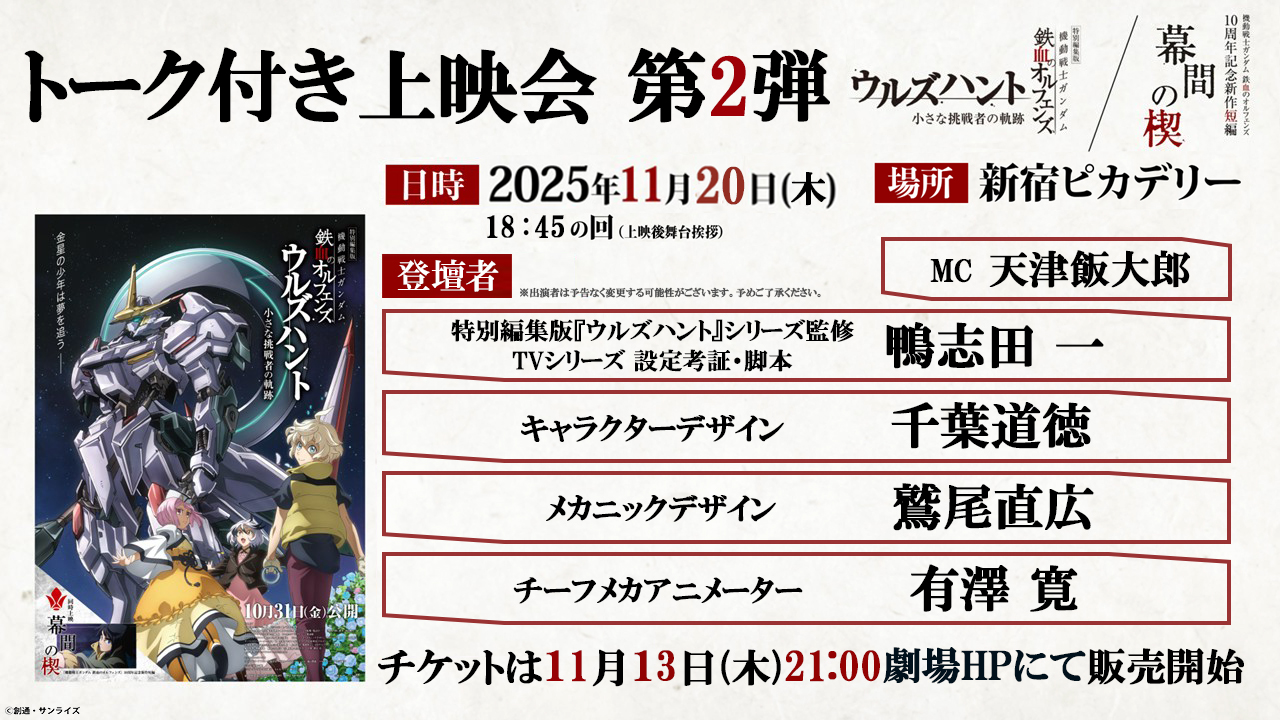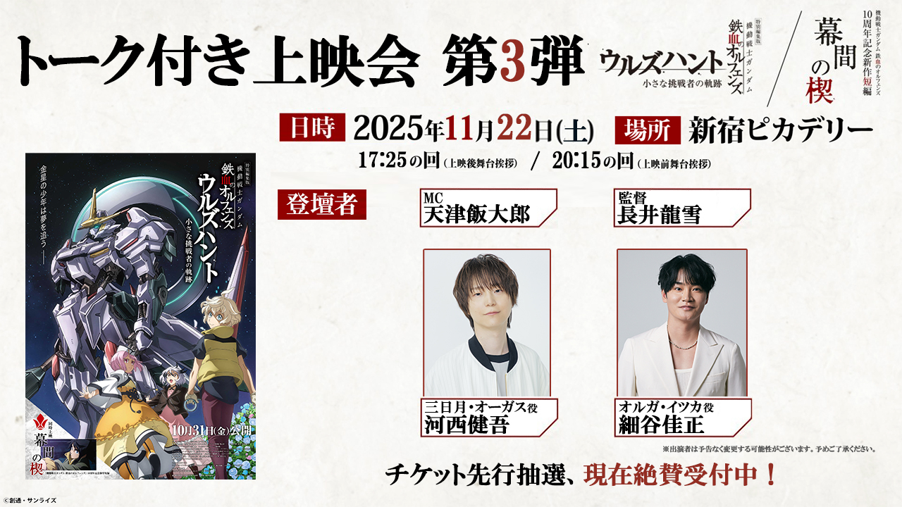 特別編集版『機動戦士ガンダム 鉄血のオルフェンズ ウルズハント -小さな挑戦者の軌跡-』/同時上映『機動戦士ガンダム 鉄血のオルフェンズ』10周年記念新作短編「幕間の楔」公開記念舞台挨拶 実施概要