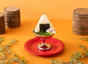 大きいおにぎりを食べているドラちゃんをイメージしたデザート。