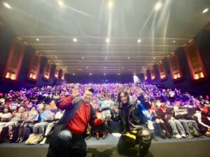シリーズ初の応援上映は、デスおじが降壇した後も来場したお客さん同士で「応援上映、盛り上がろう!」という掛け声とともに始まり、冒頭で企業ロゴなどが映し出されると、感謝の言葉が飛び交うなど温かい雰囲気でスタート。本作ならではの笑いや、涙など観客のさまざまな感情があふれ、終盤のライブシーズンではそれぞれの推し色に輝いたペンライトで会場がまさにライブ会場に一変!終始熱気に包まれた応援上映は観客の大きな拍手と共に幕を閉じました。
