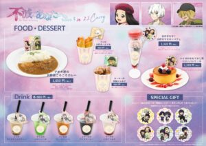 描き下ろし・描き起こしの新規イラストを使⽤したグッズに加え、作品の世界観を楽しめるオリジナルメニューも多数⽤意している。皆様のご来店を⼼よりお待ちしております。