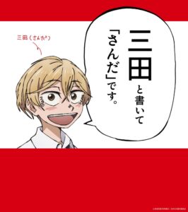 「三田」と叫び呟くキャラクターたち。それは駅名かと思いきや…実はアニメ「SANDA」の主人公、三田の名前。三田で三田と言われ続けるにつれ、いつしか「三田駅」を「さんだ駅」と読まずにはいられないかもしれません…!