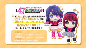 今月11月29日(土)・30日(日)に石川県金沢市で開催されるアニメ・スタいしかわで『TVアニメ【推しの子】』の着ぐるみグリーティングイベントが決定した。