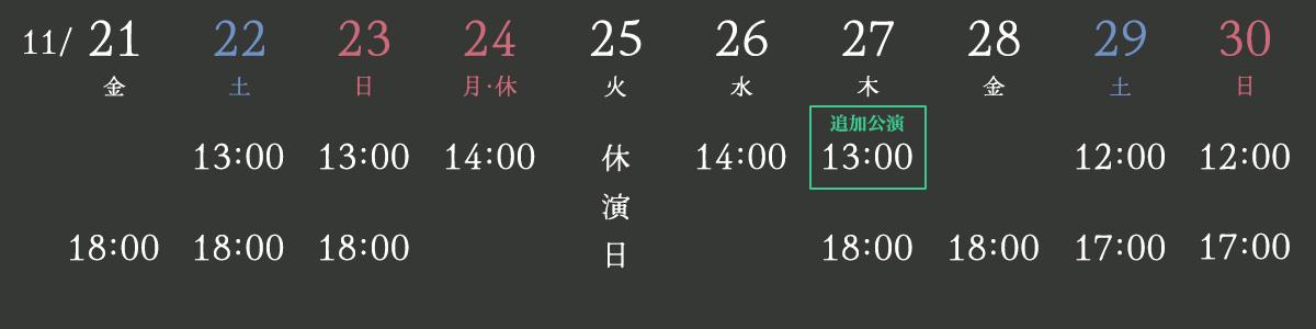 松本 岳… 11/23(日)18:00・11/27(木)18:00