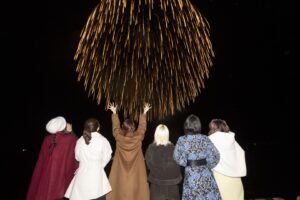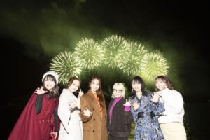 初めて6人揃っての登壇となった本イベントに本渡は「今日1日の中でこの6人で喋りすぎて、移動中の車内だったりと一緒に時間を過ごしながら来たんですけど、やはりね 6人集まって、この伊万里湾大花火大会に来られたのは本当に幸せです!」と喜びを語り、続いて、北部九州最大級の3尺玉をはじめ多彩な花火が打ち上がる伊万里湾大花火にちなんで、花火の思い出を問われた田野は「2019年に伊万里湾大花火大会に来ていて、こんな夢の中にいるような花火ってあるんだって思っていました。今回は6人で来ることができて、また大きい花火を見られるのかと、本当に楽しみにしてきたので、ここで新しく皆さんと一緒に思い出を、また一ついい意味で塗り替えるっていう気持ちで楽しみにしていました」と2019年に訪れた伊万里湾大花火大会での思い出を振り返りながら、ずっと今日の開催を心待ちにしていた心境を明かしました。