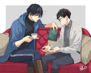 イラストにはオフな姿の誠一郎とアレシュが共に休日を過ごす姿が描かれている。
