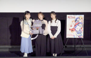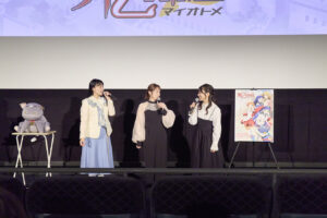 アリカ役の菊地美香さん、マシロ役のゆかなさん、ナオ役の南里侑香さんが登壇し、古里尚丈プロデューサーを司会に迎えトークイベントが実施された。