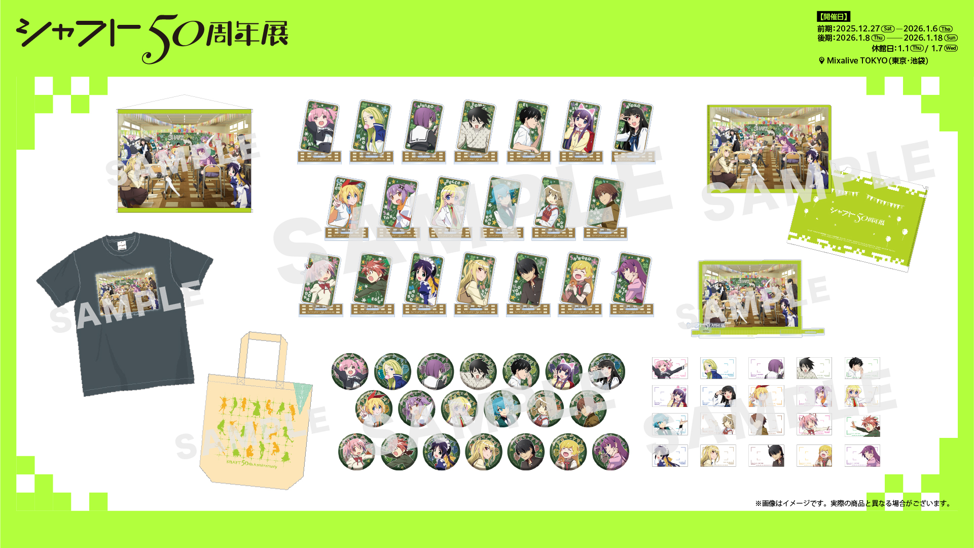 シャフト50周年展のオフィシャルグッズラインナップ第1弾が公開された。