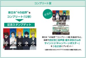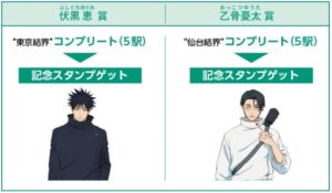 東日本”4の結界”の12駅から1駅のスタンプを獲得すると「虎杖悠仁」の記念スタンプをプレゼント