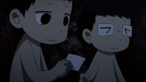 今回映し出されるのは、息抜きの宴会が催された後、田丸均(CV:板垣李光人)と吉敷佳助(CV:中村倫也)が2人語らい合うシーン。吉敷は、自身の出征に伴い日本に残してきた家族、母と妹の写真を取り出し、ボロボロになってしまう前に2人の似顔絵を描いてほしいと田丸に頼み込む。