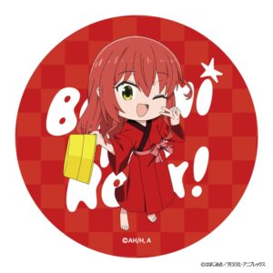 描き起こしたお風呂上がりのかわいい浴衣姿に黄色の風呂桶を持った後藤ひとり、伊地知虹夏、山田リョウ、喜多郁代の結束バンドメンバーと、伊地知星歌、PAさん、廣井きくり、後藤ふたり&ジミヘンも加えた全8キャラクターをラインナップしたランダムの缶バッジです。