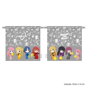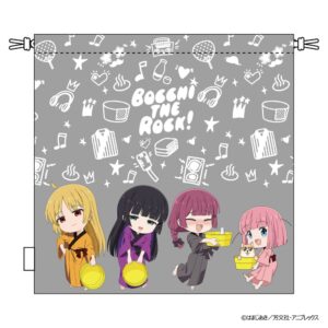 描き起こしたお風呂上がりのかわいい浴衣姿に黄色の風呂桶を持った後藤ひとり、伊地知虹夏、山田リョウ、喜多郁代の結束バンドメンバーと、伊地知星歌、PAさん、廣井きくり、後藤ふたり&ジミヘンも加えた全8キャラクターをデザインした巾着袋。