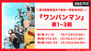 「ABEMA」で『ワンパンマン』第1期・第2期全話と第3期最新話までの振り返り無料一挙放送が決定!