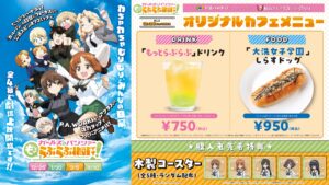 「もっとらぶらぶ」ドリンク 価格:750円(税込)/「大洗女子学園」しらすドッグ 価格:950円(税込)※しらすドッグはT・ジョイ京都での販売予定はございません。