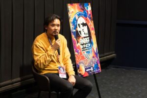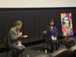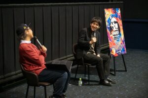 この日は平日夜の開催にもかかわらず客席は満員となっており、公開からの大きな反響について「実はエンターテインメントを意識しています」という。「ちょっと作家性がある個性的なことをやりがちなので、まずちゃんと観客に楽しんでもらわなければ意味がないと思っています。そのうえで自分なりのエンターテインメントを入れています。例えば、途中にある3分40秒の雨の長回しのシーンとかが、そこでかかる劇伴の盛り上げとか、ワンカットにしたりとか、そういうところが自分なりのエンタメなんです」と語り、その後の質疑応答には次々と多くの観客からの質問が。「こんなに答えたことないですよ」と言いつつも丁寧に答えていた。