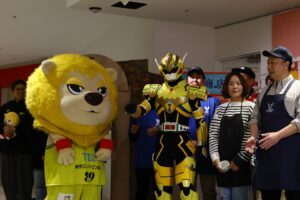 また、MOVIX仙台のほど近くにある長町商店街では、本作とのタイアップキャンペーンを展開中。この日は、日頃から作品を応援してきた商店街のみなさんが劇場に招待され、舞台挨拶に先駆けて、水上と綱に向け「どの店舗が“長町商店街ウィンドブレイカー賞”にふさわしいか」を直接プレゼンする企画が行われた。精肉店「和牛人はらだ」、カフェ「PUBLIC.COFFEE」、バスケットボールチーム・仙台89ERSのキャラクター「ティナ」、さらにはご当地ヒーロー「ナガマックス」まで、個性豊かな顔ぶれが勢ぞろい。熱意あふれるプレゼンの末、水上が「和牛人はらだ」、綱が「ナガマックス」をそれぞれ選出し、商店街のみなさんも大熱狂!