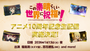 2016年にテレビシリーズ第1期が放送され、来年でアニメ放送10周年を迎える、異世界コメディの決定版『この素晴らしい世界に祝福を!』。
