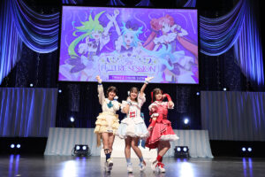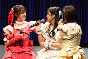プリンセスの衣装で登場した葵あずさ、藤本侑里、橘杏咲は、会場を埋め尽くす拍手と歓声に包まれながら、エネルギッシュに歌い出しました。