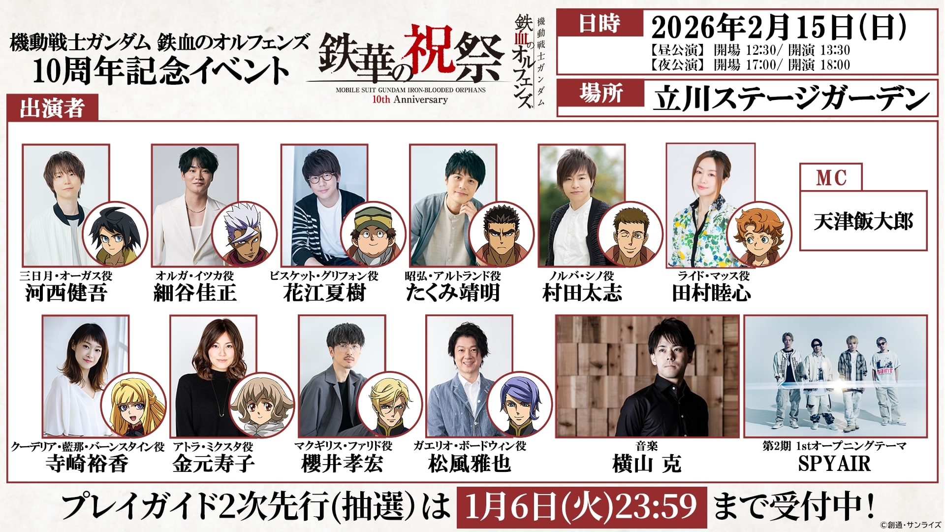 『機動戦士ガンダム 鉄血のオルフェンズ』10周年記念プロジェクトのフィナーレイベント「機動戦士ガンダム 鉄血のオルフェンズ 10周年記念イベント -鉄華の祝祭-」のプレイガイド2次先行チケット受付スタート!