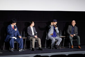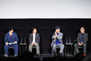 『リーンの翼』の第1話、第2話の上映に加え、上映後に福山潤さん(エイサップ・鈴木 役)、富野由悠季総監督、工藤昌史さん(キャラクターデザイン)、河口佳高プロデューサーが登壇したトークイベントが実施された。