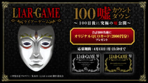 TVアニメ『LIAR GAME(ライアーゲーム)』4月放送決定を記念し、“嘘”問題や企画を100日間お届けする『100嘘カウントダウン ~100日後に究極の“嘘”公開~』が開催される。