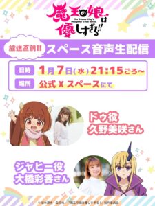 第1話放送直前である、1月7日(水)21:15より、公式Xスペースで出演声優たちによる音声生配信企画が決定した。