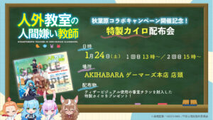 TVアニメ『人外教室の人間嫌い教師』秋葉原コラボキャンペーンの開催を記念し、2026年1月24日(土)に、AKIHABARAゲーマーズ本店の店頭にて、作品ノベルティカイロの配布会を実施することが決定した。