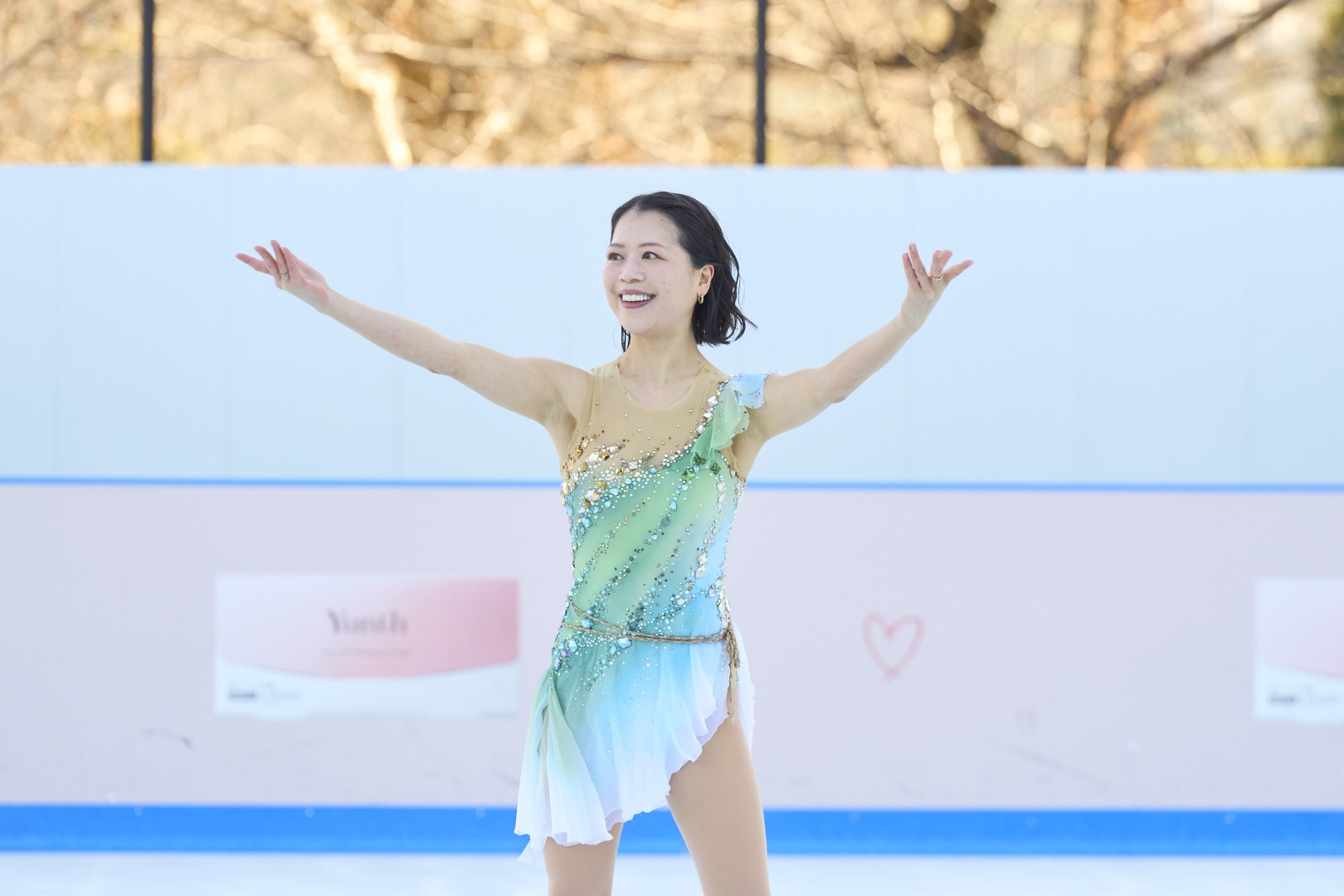 会場の「Yunth MIDTOWN ICE RINK」は都内最大級の屋外スケートリンクでのイベントにキャスト一同感激した様子。冒頭のスケートショーについて、間近で観賞した春瀬は鈴木の演技や表情から「滑るのが幸せで仕方ないといういのりちゃんの気持ちが伝わってきて、第1話からの思い出が蘇り、泣きそうになりました」と声を震わせた。大塚も「アニメのシーンが思い起こされて感無量でした」と胸がいっぱいの様子。 これを受け、実際にいのりの演技を滑った鈴木は、「第1話のブロック大会のシーンを意識し、いのりの過去やスケートに出会えた喜び、頑張る気持ちを込めて滑りました」と、滑り終えたばかりの晴れやかな表情で語った。