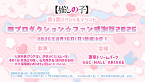 加えて、第3期放送を記念したスペシャルイベント『苺プロダクション☆ファン感謝祭2026』が2026年8月16日(日)に開催されることが決定。
