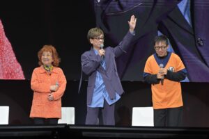 オープニングを飾った「新展開超発表!ゲンキダステージ Part1」では孫悟空役の野沢雅子さん、DRAGON BALL シリーズ エグゼクティブプロデューサーの伊能昭夫氏が登壇し、40周年を記念し制作された『DRAGON BALL』40周年記念スペシャル映像が発表されました。鳥山明先生のイラストの数々が最新技術によりアニメーションで動き出す躍動感のある映像が全世界初披露となりました。また、『DRAGON BALL』40周年記念スペシャル映像の音楽を担当したのは、数多くの映画音楽を作りあげ、アカデミー賞など数々の作曲賞受賞歴を持つ世界的映画音楽作曲家ハンス・ジマー氏であることも発表された。ハンス・ジマー氏による壮大で力強い音楽が奏でられ、主人公・孫悟空の成長と冒険の物語を感じさせる特別な映像作品となっています。さらに映像の最後にはアニメ『ドラゴンボール 銀河パトロール』の制作決定も発表され会場からは歓声と大きな拍手が巻き起こりました。野沢さんは制作決定に際して「初めて聞いたので、びっくりしました!」と驚きの表情を魅せ、伊能氏は「とにかく最高のクオリティの映像を作っていますので、楽しみにしていてほしいです」とコメントした。