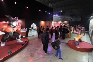 そして2026年展開予定の新商品が展示され、ファンにとっては見逃すことのできない『ドラゴンボール』の‟これまで“と‟これから”を楽しめる展示が行われました。DRAGON BALL MOMENTSでは「ドラゴンボール ゲンキダマツリ」キービジュアルにも登場した歴代アニメシリーズの悟空のビジュアルが大型アクリルパネルとして展示されたほか、最新アニメ『ドラゴンボールDAIMA』のコーナーでは、鳥山先生による貴重な設定イラストが多数展示され、さらに第1魔界のゴマーと悟空たちの戦いを彷彿とさせる悟空、ベジータ、ゴマーの立像がお目見えするなど『ドラゴンボールDAIMA』の世界観を存分に体感できる展示となった。