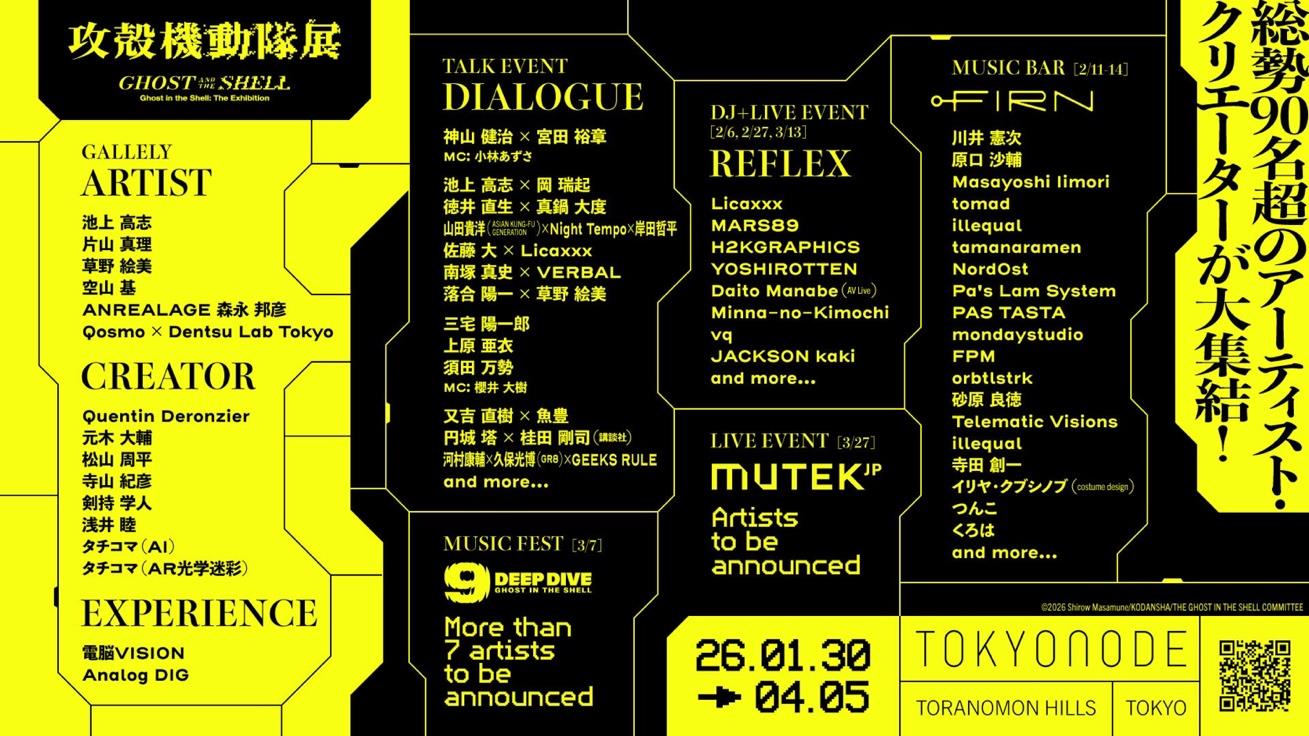 2026年1月30日(金)から4月5日(日)まで、虎ノ門ヒルズ ステーションタワー45Fの情報発信拠点「TOKYO NODE(東京ノード)」内 TOKYO NODE GALLERYで開催する『攻殻機動隊展 Ghost and the Shell』の会期中特別イベント(第二弾情報)が公開された。