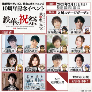 また現在チケット一般販売受付中の2月15日(日)より立川ステージガーデンにて開催される、『鉄血のオルフェンズ』10周年記念プロジェクトのフィナーレを飾るスペシャルイベント「機動戦士ガンダム 鉄血のオルフェンズ 10周年記念イベント -鉄華の祝祭-」の予習にも最適。